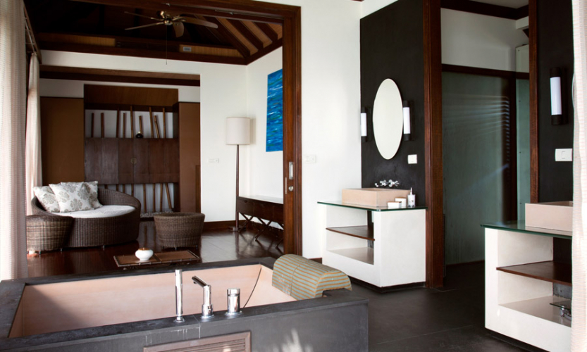 From the gorgeous comfort of your king size bed, lose yourself in the uninterrupted vista across the sparkling azure lagoon. As you relax in your enticing bathtub for two, your view is your personal infinity pool and the Indian Ocean beyond. Maximising light and vision, the floor-to-ceiling glass panel windows that encase our 16 Escape Water Villas are their defining architectural feature.
