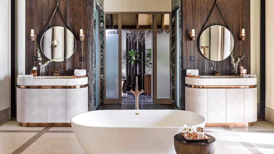 No need to worry about space here. In addition to the three bedrooms, two living rooms and two infinity pools, this 400 sqm area boasts three dressing rooms each with two built-in closets. From terraces perfect for gatherings to romantic balconies; an uninterrupted ocean view renews your joy to be alive. A boat or as well call them a Dhoni will be provided whenever you want to head out to the spa or restaurants.
